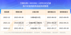 一、万泰生物(603392)股票分红记录 万泰生物最新一次公布的分红方案:10转4派10元。 本次权益分派股权登记日为2023年6月2日,除权除息日为2023年6月5日,派息日为2023年6月5日。...