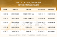 一、威唐工业(300707)股票分红记录 威唐工业最新一次公布的分红方案:10派0.599999元。 本次权益分派股权登记日为2023年6月1日,除权除息日为2023年6月2日,派息日为2023年6月2日...