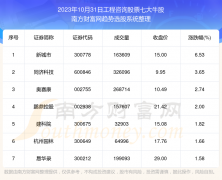 截止2023年10月31日,个股表现方面,工程咨询股票当日领涨股为新城市(300778),该股当日报收15.00,上涨6.53%,成交量16.36万。同济科技(600846)以上涨3.65%紧随其后,该股当日成交量32.61万。此...