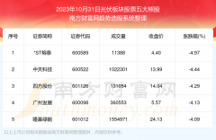 截止2023年10月31日,个股表现方面,光伏板块股票当日领跌股为*ST榕泰(600589),该股当日报收4.40,上涨-4.97%,成交量1.14万。中天科技(600522)以下跌-4.44%紧随其后,该股当日成交量102.23万。此...