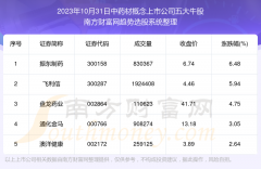 截止2023年10月31日,个股表现方面,中药材概念上市公司当日领涨股为振东制药(300158),该股当日报收6.74,上涨6.48%,成交量83.04万。飞利信(300287)以上涨5.94%紧随其后,该股当日成交量192....