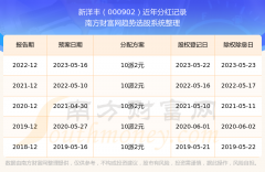 一、新洋丰(000902)股票分红记录 新洋丰最新一次公布的分红方案为10派2元。本次权益分派股权登记日为2023年5月22日,除权除息日为2023年5月23日,派息日为2023年5月23日。 近年...