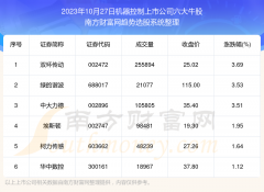 截止2023年10月27日,个股表现方面,半导体检测板块股票当日领涨股为晶盛机电(300316),该股当日报收43.26,上涨4.37%,成交量19.21万。华峰测控(688200)以上涨4.32%紧随其后,该股当日成交量...