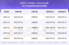 一、新洋丰(000902)股票分红记录 新洋丰最新一次公布的分红方案为10派2元。本次权益分派股权登记日为2023年5月22日,除权除息日为2023年5月23日,派息日为2023年5月23日。 近年...