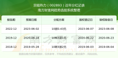 一、京能热力(002893)股票分红记录 京能热力最新一次公布的分红方案为10派0.43元。本次权益分派股权登记日为2023年6月7日,除权除息日为2023年6月8日,派息日为2023年6月8日。 ...