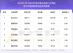 截止2024年1月15日,个股表现方面,ERP软件概念股票当日领跌股为金山办公(688111),该股当日报收240.58,上涨-6.51%,成交量6.38万。普联软件(300996)以下跌-2.96%紧随其后,该股当日成交量5.09万...