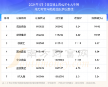 截止2024年1月15日,个股表现方面,百货上市公司当日领涨股为茂业商业(600828),该股当日报收5.24,上涨10.08%,成交量30.6万。赫美集团(002356)以上涨10.04%紧随其后,该股当日成交量14.43万。此...