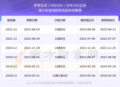 一、罗莱生活(002293)股票分红记录 罗莱生活最新一次公布的分红方案为10派6元。本次权益分派股权登记日为2023年6月9日,除权除息日为2023年6月12日,派息日为2023年6月12日。 近...