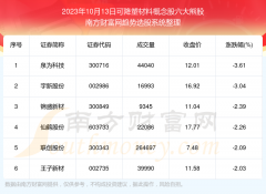 截止2023年10月13日,个股表现方面,可降塑材料概念股当日领跌股为泉为科技(300716),该股当日报收12.01,上涨-3.61%,成交量4.4万。宇新股份(002986)以下跌-3.04%紧随其后,该股当日成交量1.7万...