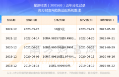 一、星源材质(300568)股票分红记录 星源材质最新一次公布的分红方案:10派1元。 本次权益分派股权登记日为2023年5月29日,除权除息日为2023年5月30日,派息日为2023年5月30日。...