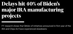 英国《金融时报》近日公布了该报关于美国制造业的相关调查结果。结果显示,美国总统拜登推出的两个标志性制造业法案在执行首年进展不顺,在已宣布的造价过亿美元的大项目中,近四...