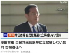 中新网8月14日电 据日本广播协会(NHK)报道,日本首相岸田文雄透露,他不会参加计划于9月举行的日本自民党总裁选举。 图片来源:日本广播协会(NHK)报道截图 报道称,这意味着在...