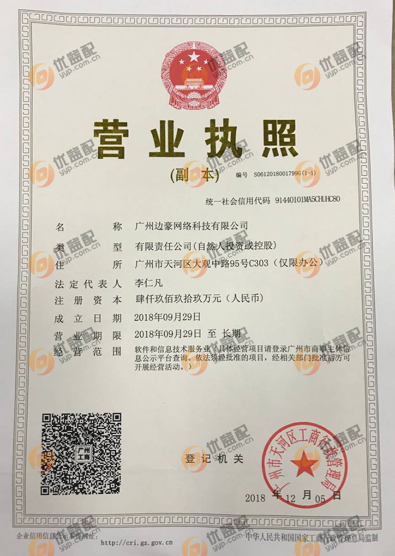 优益配(www.yyp.com.cn)隶属于广州边豪网络科技有限公司。