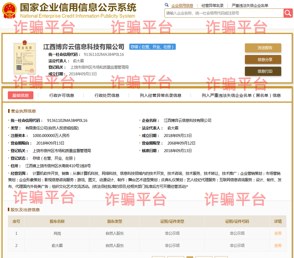| 公司名称 | 江西博弈云信息科技有限公司 | 信用代码 | 91361102MA384P0L16 |
