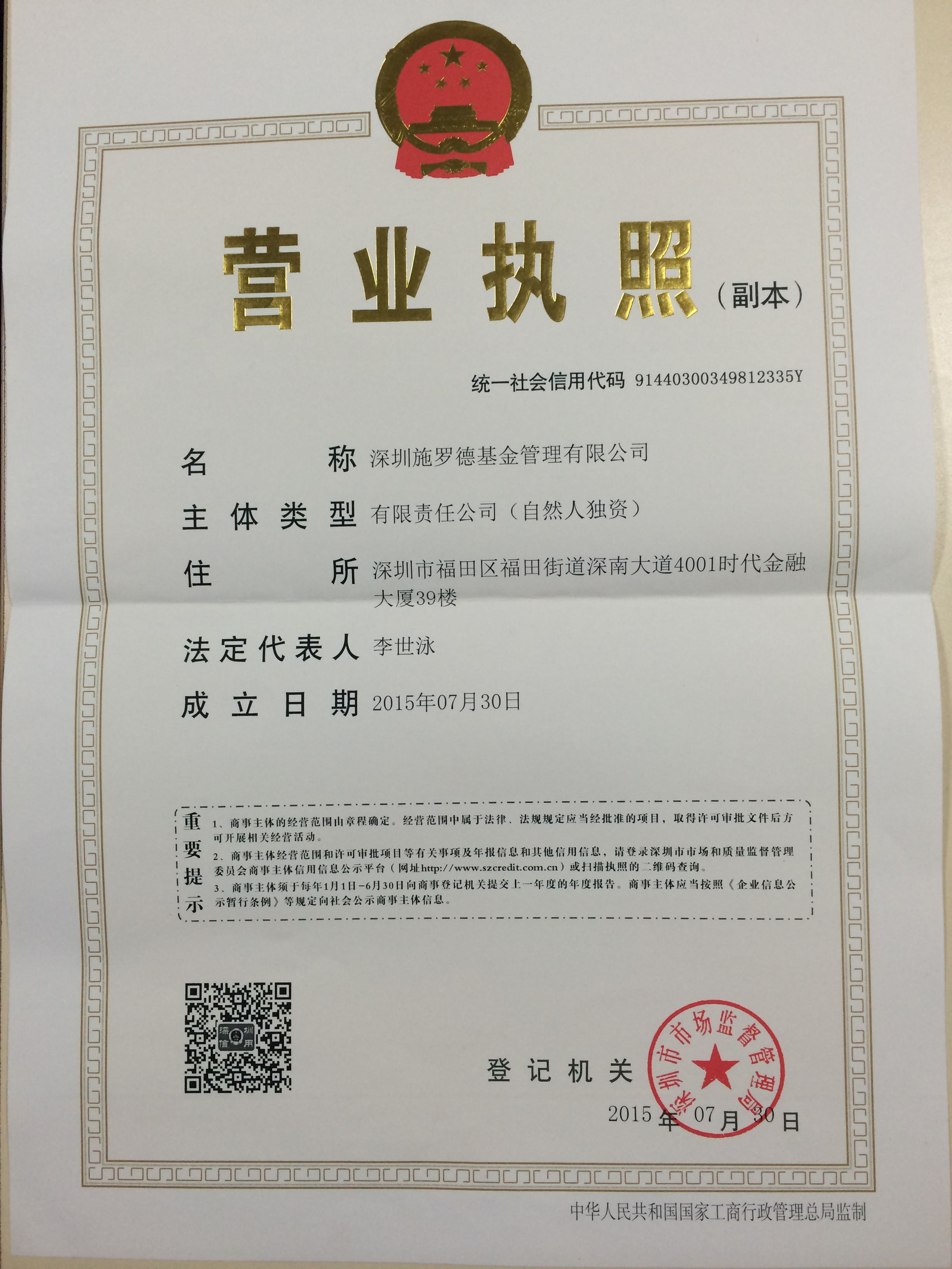 | 公司名称 | 深圳施罗德基金管理有限公司 | 信用代码 | 91440300349812335Y |