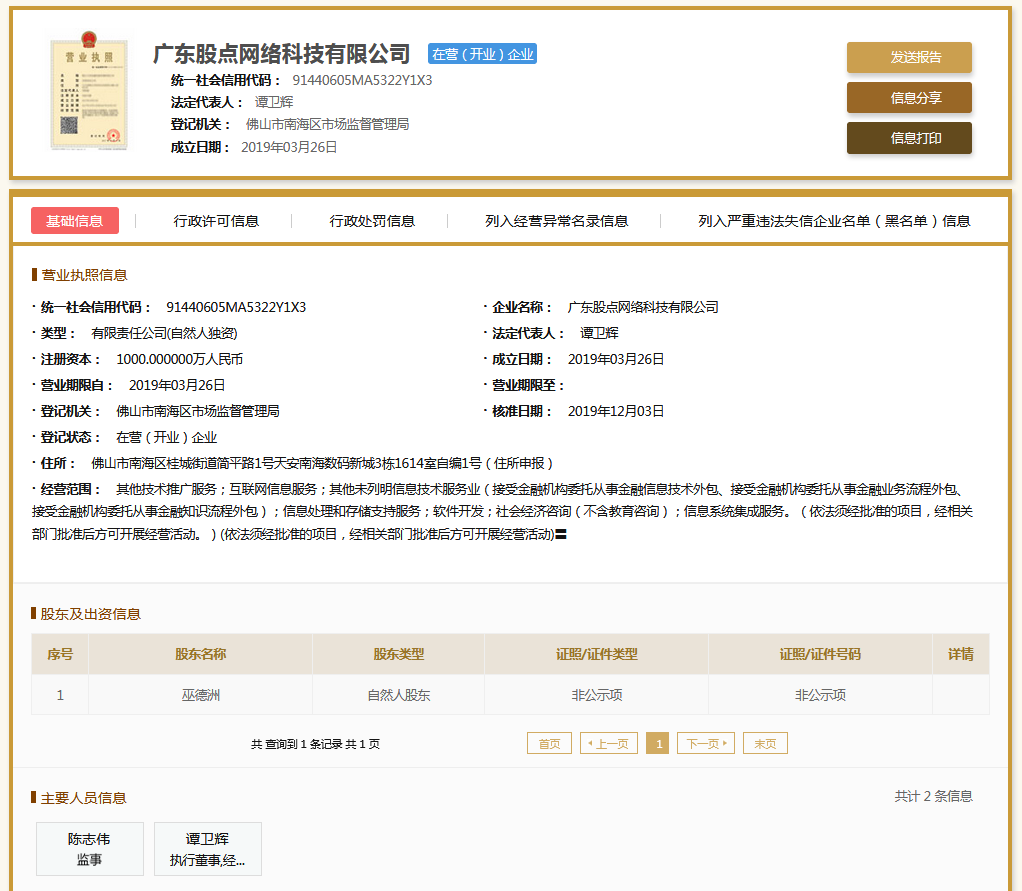 | 公司名称 | 广东股点网络科技有限公司 | 信用代码 | 91440605MA5322Y1X3 |