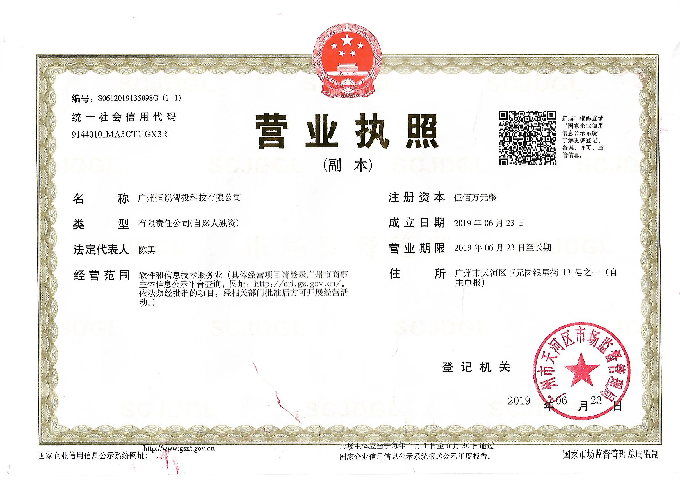 | 公司名称 | 广州恒锐智投科技有限公司 | 信用代码 | 91440101MA5CTHGX3R |
