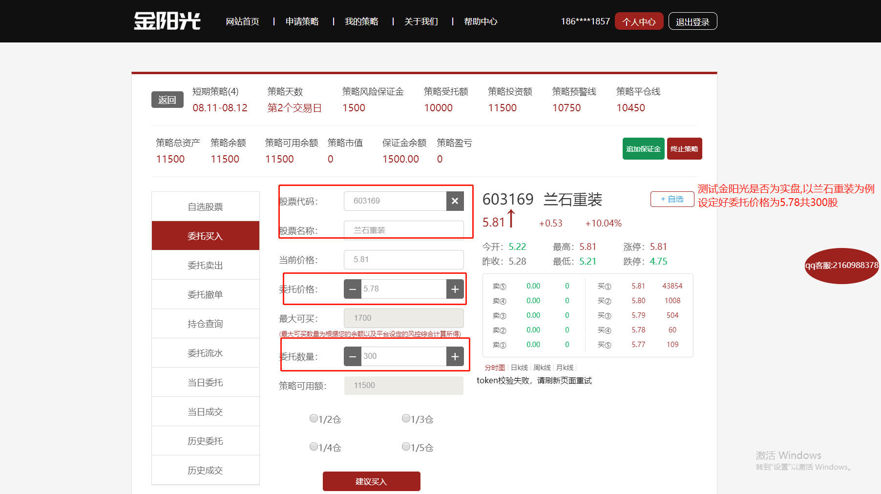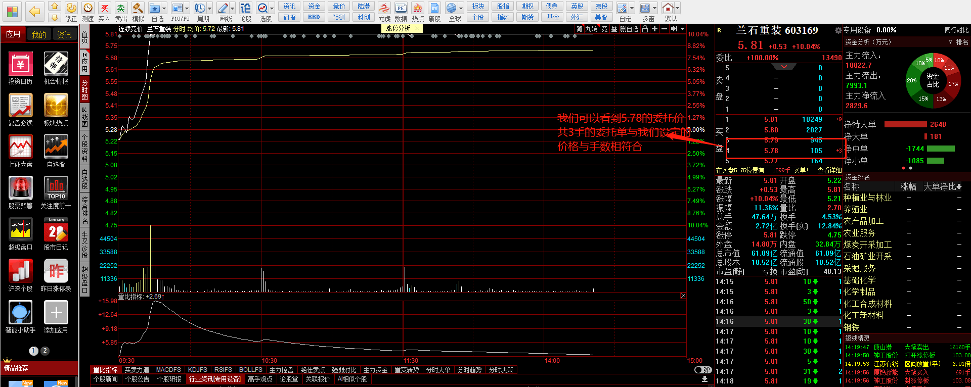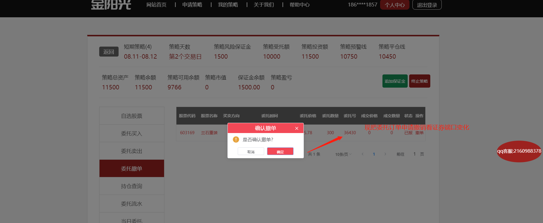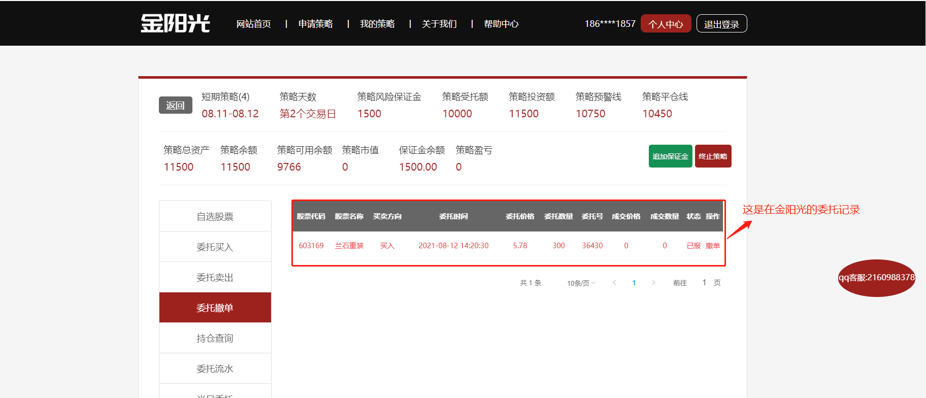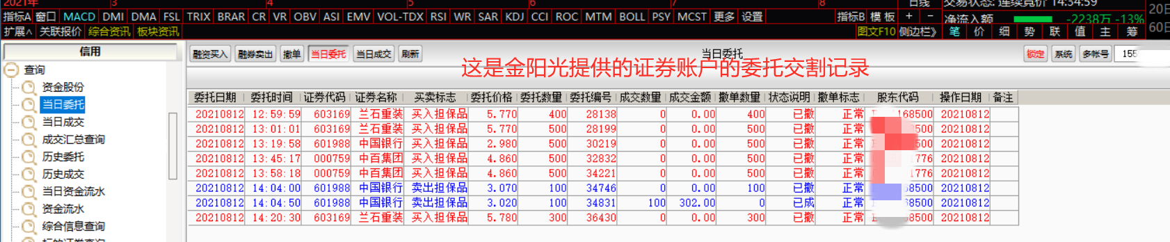 在金阳光测试中测试员通过同花顺券商端口,观察在金阳光设定的价格与委托手数是否有L2委托记录,经验证委托买入,与委托撤销在券商端口中都有L2委托记录,并且测试员要求金阳光提供证券母账户交割记录,加以确认,可以判断金阳光有对接证券交易端口,金阳光为实盘商家(测评仅供参考不作推荐,建议投资者自行测定)