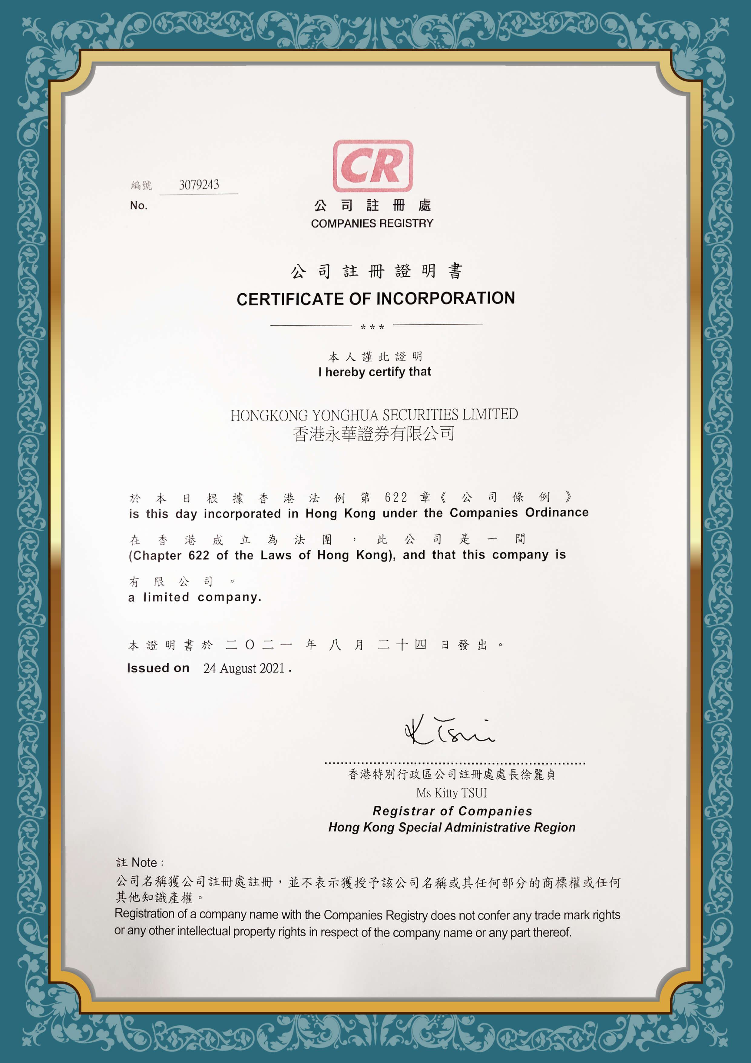 | 公司名称 | 香港永崋證券有限公司 | 信用代码 | |