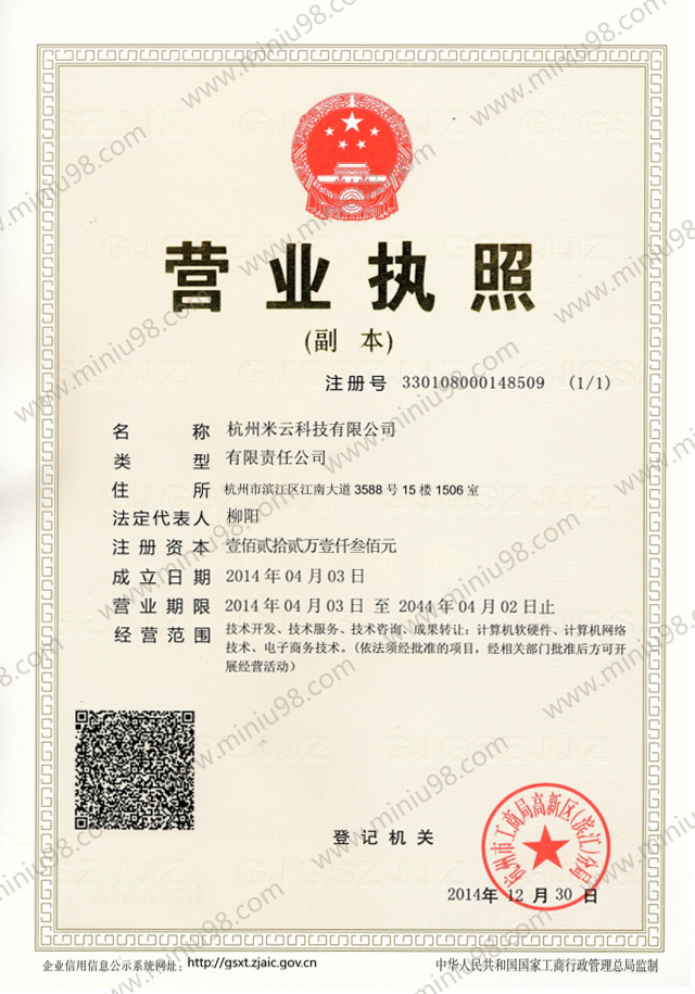 | 公司名称 | 杭州米云科技有限公司 | 信用代码 | 91330108096534997P |