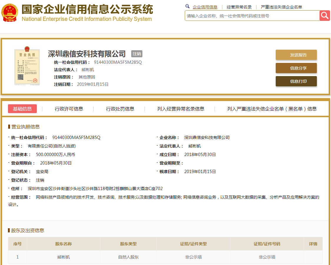 鼎信金股(www.dxjingu.com)股票配资平台,运营主体“深圳鼎信安科技有限公司”已注销。