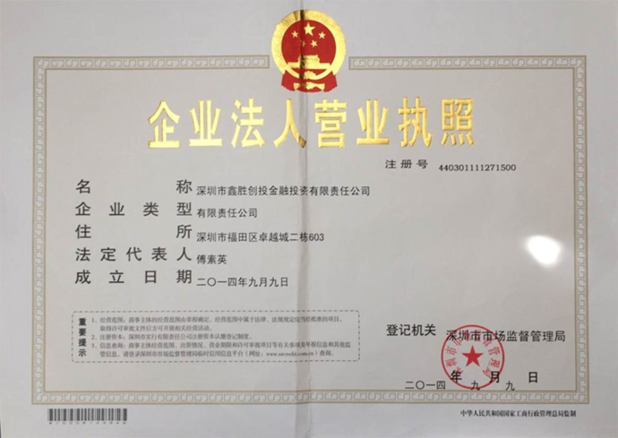| 公司名称 | 深圳市鑫胜创投金融投资有限责任公司 | 信用代码 | 9144030031170665X7 |