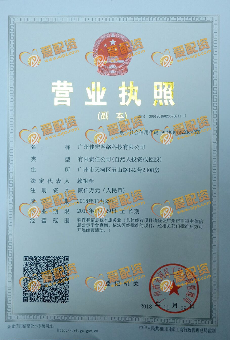 | 公司名称 | 广州佳宏网络科技有限公司 | 信用代码 | 91440101MA5CK34BX8 |
