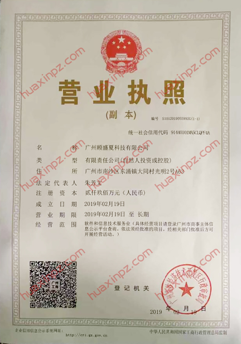 | 公司名称 | 广州顾盛夏科技有限公司 | 信用代码 | 91440101MA5CLQPF4A |